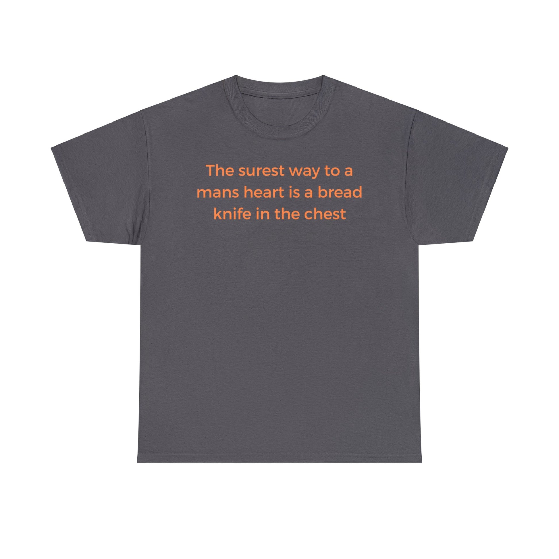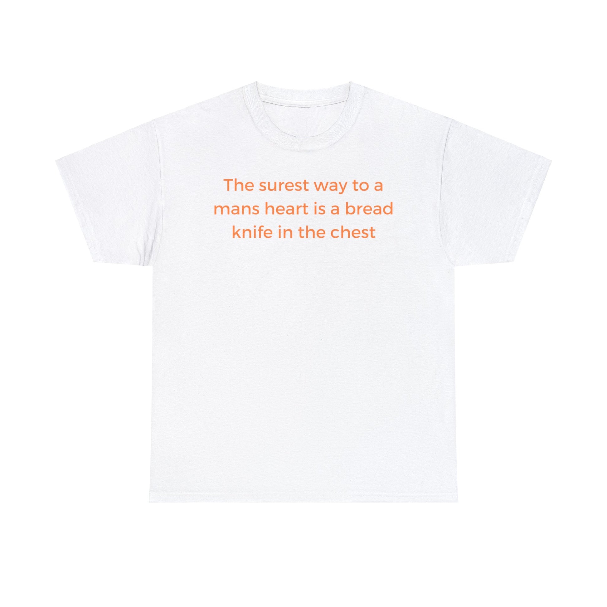 The surest way to a mans heart is a bread knife in the chest, funny tee shirt.